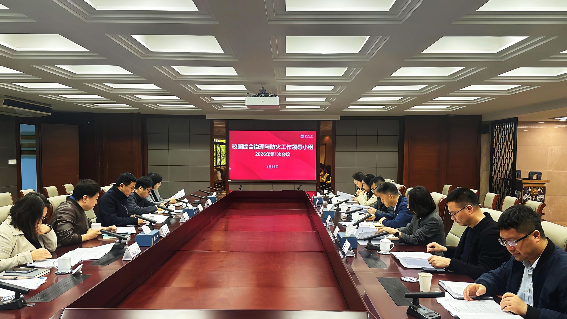 会议组织学习了《江苏省高等学校安全管理工作规定》等文件精神,集中梳理了涉及校园安全稳定重点领域的风险隐患点,结合校园管理实际,围绕安全责任落实、教育与培训、隐患闭环治理、应急处置规范等方面的工作,明确综合治理、防火安全工作的重点方向与实施路径,进一步统一思想、凝聚共识,推动安全工作各项部署落地落细。