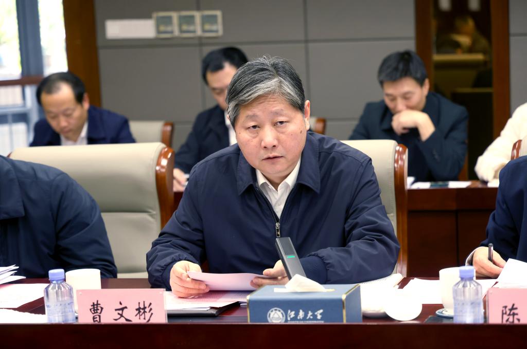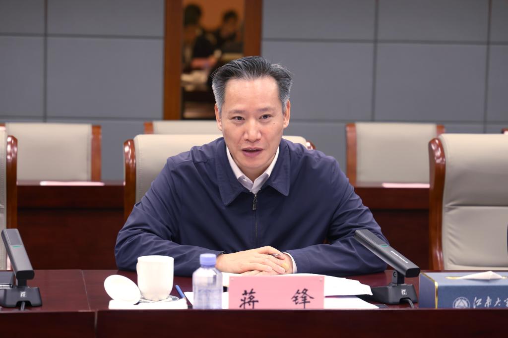 蒋锋在充分肯定近年来市校合作取得成效后指出,党的二十届四中全会对深入推进“双一流”高校作出战略部署,江南大学是无锡城市的一张亮丽名片,希望学校进一步做强整体实力,深入分析研判未来产业发展趋势和生源结构变化,科学谋划“十五五”时期学科设置和招生规模,全面提升办学能级,在新征程上高水平建设一流大学;进一步夯实安全基础,聚焦校舍、食堂、实验室等重点部位,紧盯消防、食品安全等关键领域,落细落实隐患排查整治举措,加强师生心理健康关怀,坚决维护校园安全稳定;进一步深化市校合作,紧密结合无锡产业特色和发展需求,做强轻工、纺织、食品等优势学科,加大医学院建设力度,推动更多科技创新成果在锡落地转化,加快培育合成生物、化妆品等新兴产业,更好以定制化产品和技术赋能本地企业,加速把学科优势转化为无锡产业优势。市政府将一如既往提供优质服务、做实要素保障,为江南大学在锡发展创造良好条件。