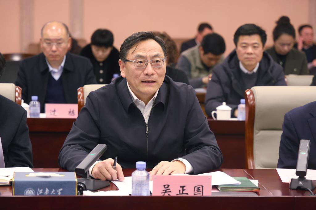 吴正国对长期以来关心支持江南大学建设发展的无锡市委、市政府表示感谢。他指出,“十四五”时期市校双方始终坚持“名城名校、彼此赋能”的合作共识,学校紧扣“教育强国,江南何为”和“服务无锡,江南何为”时代命题,积极为无锡在中国式现代化新实践中“走在前、做示范”贡献力量。市校双向奔赴、良性循环、共赢致远的使命共同体、发展共同体和伙伴共同体更加巩固。面向“十五五”,学校初步形成了以“与城市同频,与产业共振”为目标理念,以“双向赋能”为主线的合作共建思考,核心是实施“科产教融合”赋能产业、“产医研融合”赋能医疗两大合作共建工程及系列项目。他表示,学校将切实抓好“十五五”这一历史性窗口期,把学校的建设更深地融入无锡发展大局,以更高水平的教育供给、更高质量的科技创新、更高层次的人才培养,成为助推无锡产业升级、城市能级跃升的重要引擎。