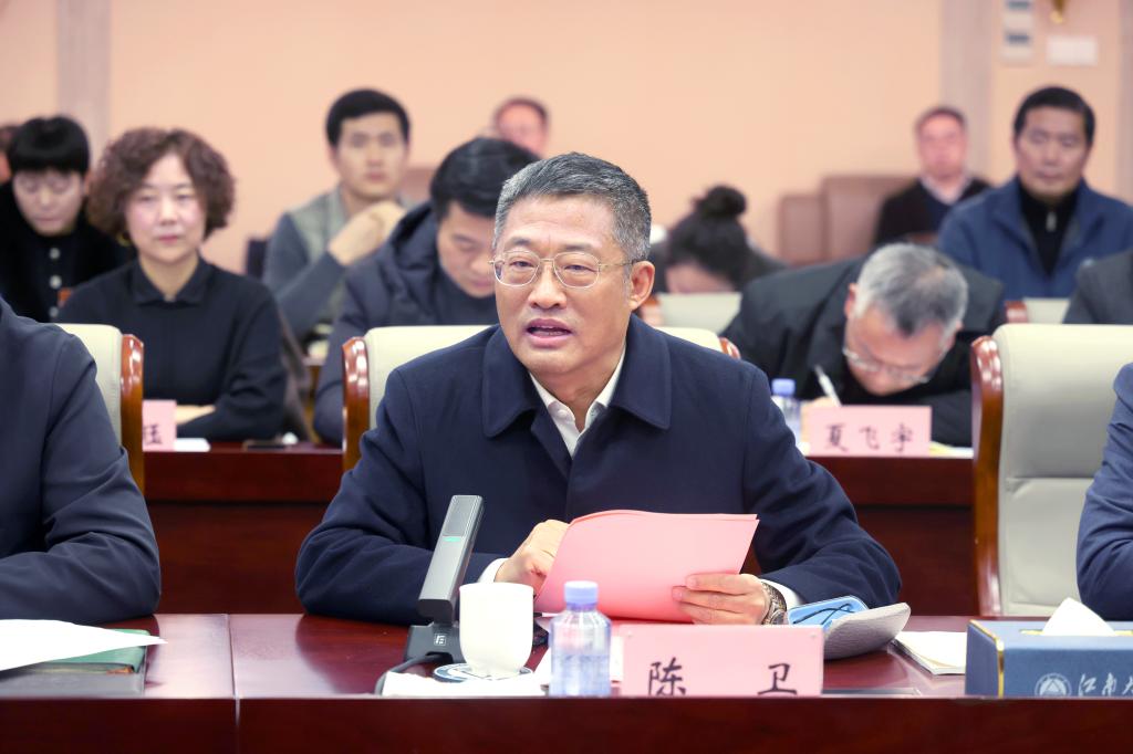 陈卫向蒋锋一行莅临江南大学表示欢迎和感谢。他简要介绍了学校在学科建设、科学研究、人才引育及服务无锡等方面的有关情况。他表示,作为扎根无锡的全国重点高校,学校将始终在办学治校进程中,积极融入无锡区域经济社会发展,大力推动服务民生、产业的各项举措在锡落地见效。