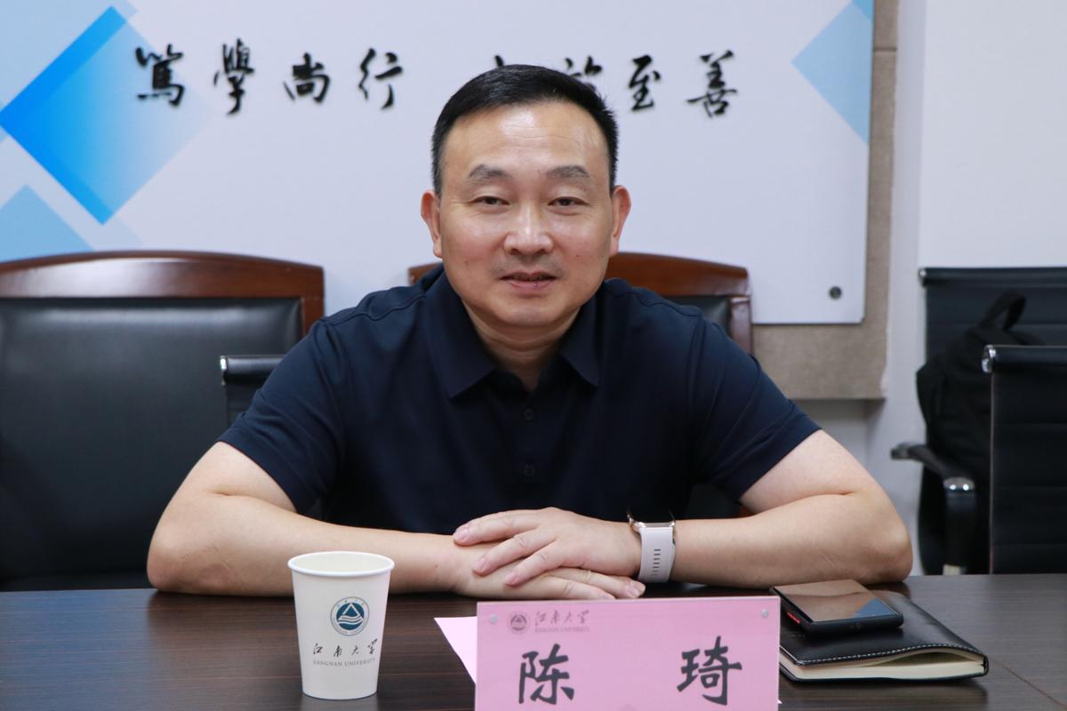 陈琦对学校的热情接待表示感谢,从单位历史、建设宗旨、组织架构、发展状况等方面,介绍了温州市工业科学研究院的情况。希望能进一步加强与江南大学的深入合作,推动更多科技成果在温州转化落地,助力地方经济发展。