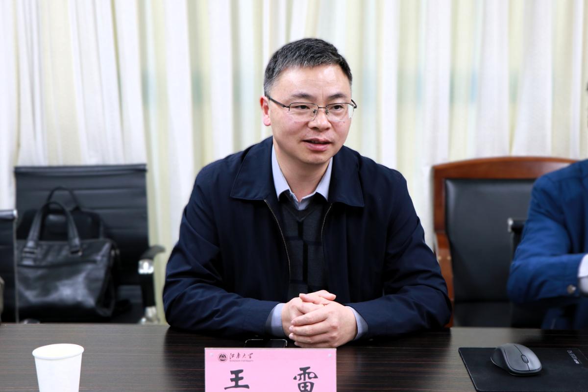 王立对胡玉凯一行的来访表示欢迎,从学校历史沿革、办学规模、校区建设、学科特色、成果转化、平台建设和社会影响等方面介绍了学校概况。他表示,宿州特色产业,与我校优势学科高度契合,合作基础良好,尤其双方共建技术转移分中心以来,交流更加深入,合作更加紧密,学校将充分发挥学科优势,助力宿州市特色产业高质量发展。王雷汇报了宿州分中心工作情况。