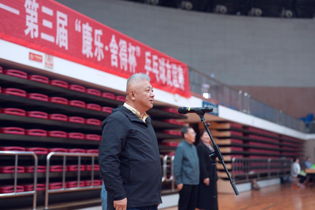 开幕式在庄严的国歌声中拉开了帷幕。姜忠平首先致辞。他指出:“两年一次的乒乓球友谊赛既是乒乓球飞舞的竞技舞台,更是老友重逢的欢乐盛会。我们希望通过这样的平台,进一步丰富老同志们的精神文化生活,让大家在运动中强健体魄,在互动中深化友谊,在欢乐中感受温暖。同时,我们也期待通过老同志们的精彩表现,在全校营造崇尚健康、热爱运动的良好氛围,推动全民健身理念深入人心。”随后,商学院退休教师殷玲代表全体运动员,体育部乒乓球教练、国家一级裁判员郑诗畅代表全体裁判员庄严宣誓。最后,原副校长、舍得酒业集团首席科学家徐岩宣布比赛正式开赛。