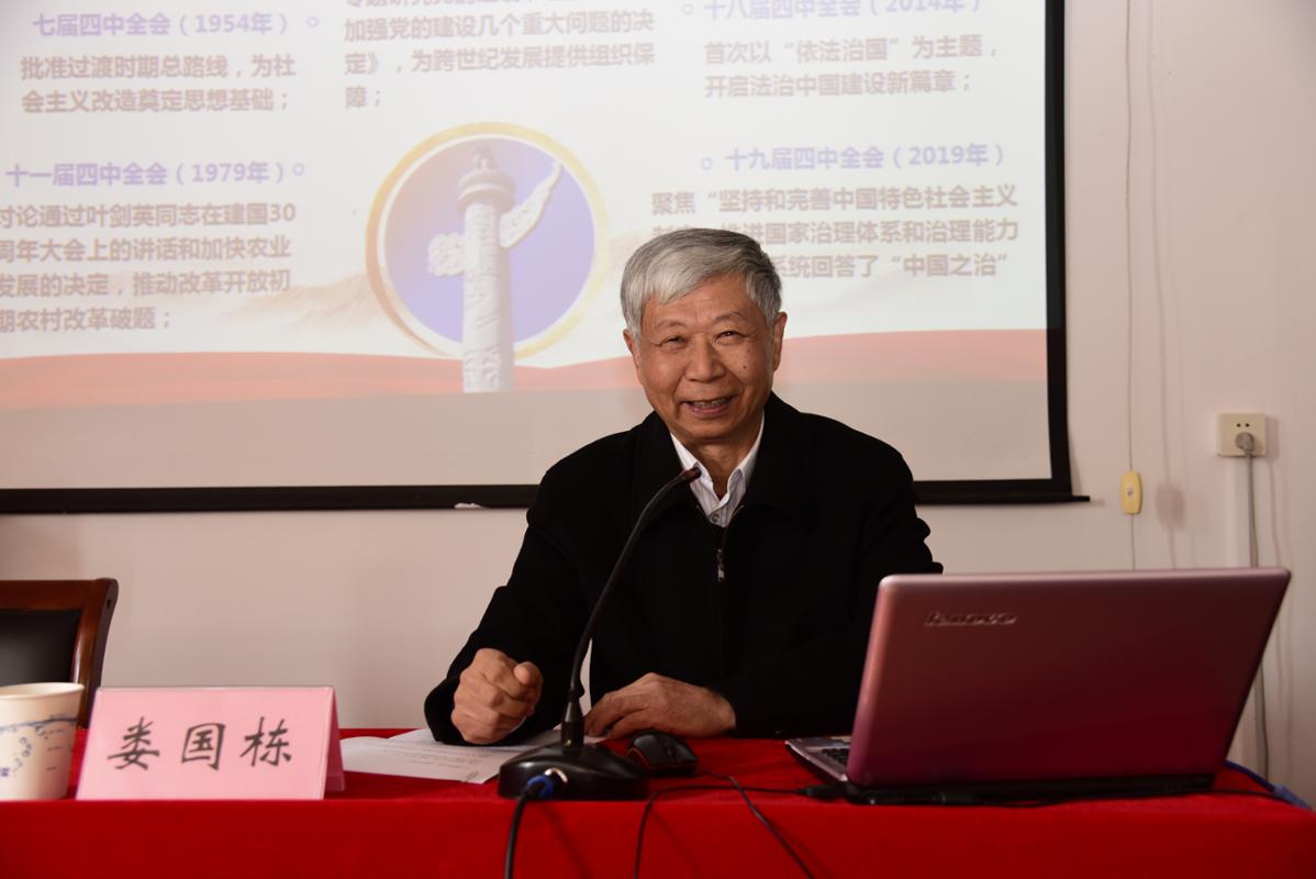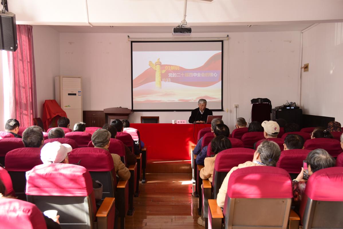 为深入学习贯彻党的二十届四中全会精神,根据校党委的统一部署,11月26日上午,离退休党委学习贯彻党的二十届四中全会精神专题报告会在离退休人员活动中心举行。校党委宣传团成员、校关工委常务副主任娄国栋同志,为全体离退休党支部书记、委员作专题宣讲。活动由离退休党委书记、离退休工作处处长张才兴主持。