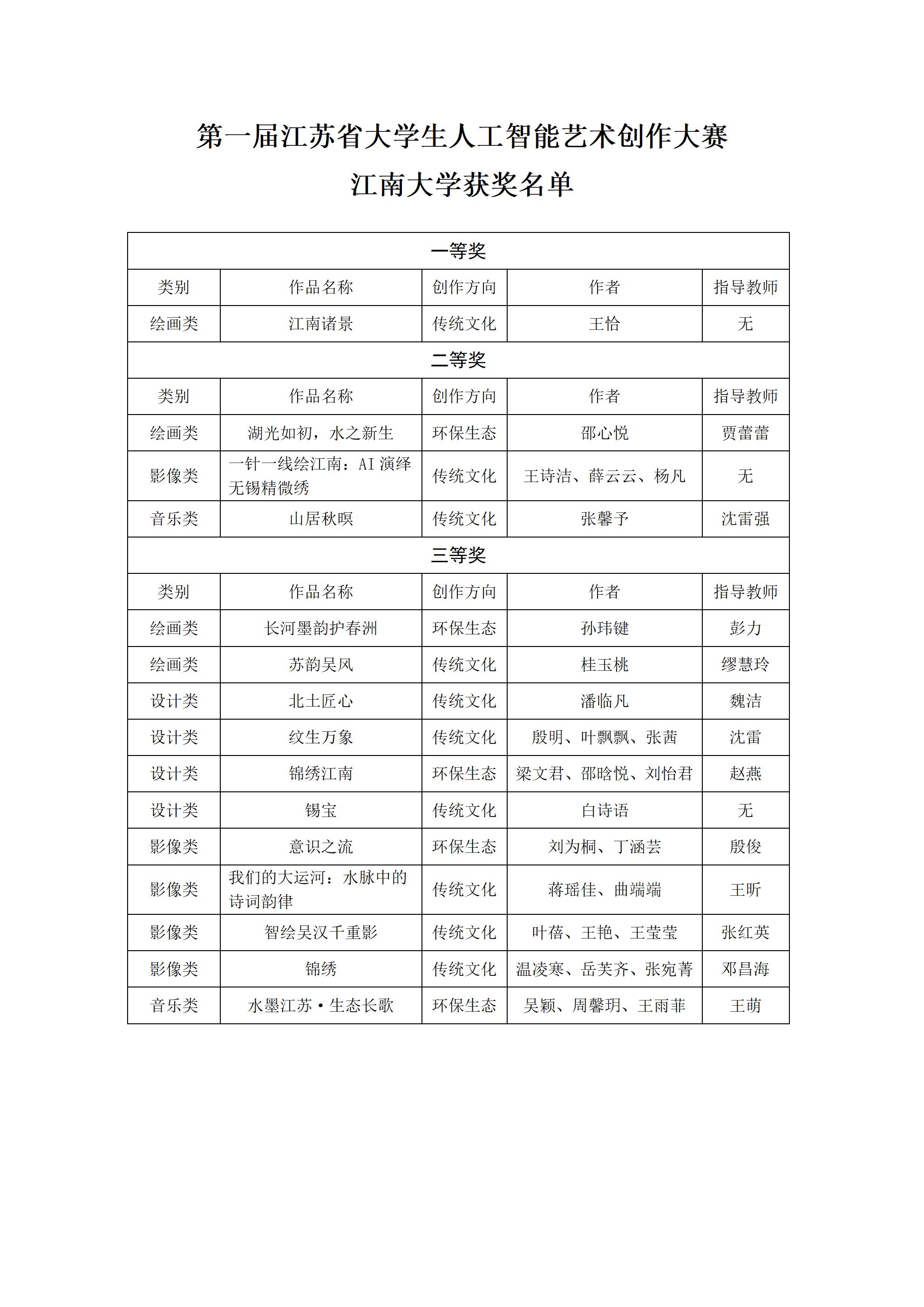 近日,由江苏省教育厅主办的“艺启AI·智绘未来”第一届江苏省大学生人工智能艺术创作大赛评选结果正式揭晓。我校学子凭借扎实的专业素养、灵动的创新思维与出色的AI应用能力,在全省高校的激烈角逐中脱颖而出,荣获一等奖1项、二等奖3项、三等奖11项,其中,《山居秋暝》获最受观众喜爱的TOP20作品,充分展现了我校在美育与科技融合育人领域的丰硕成果。