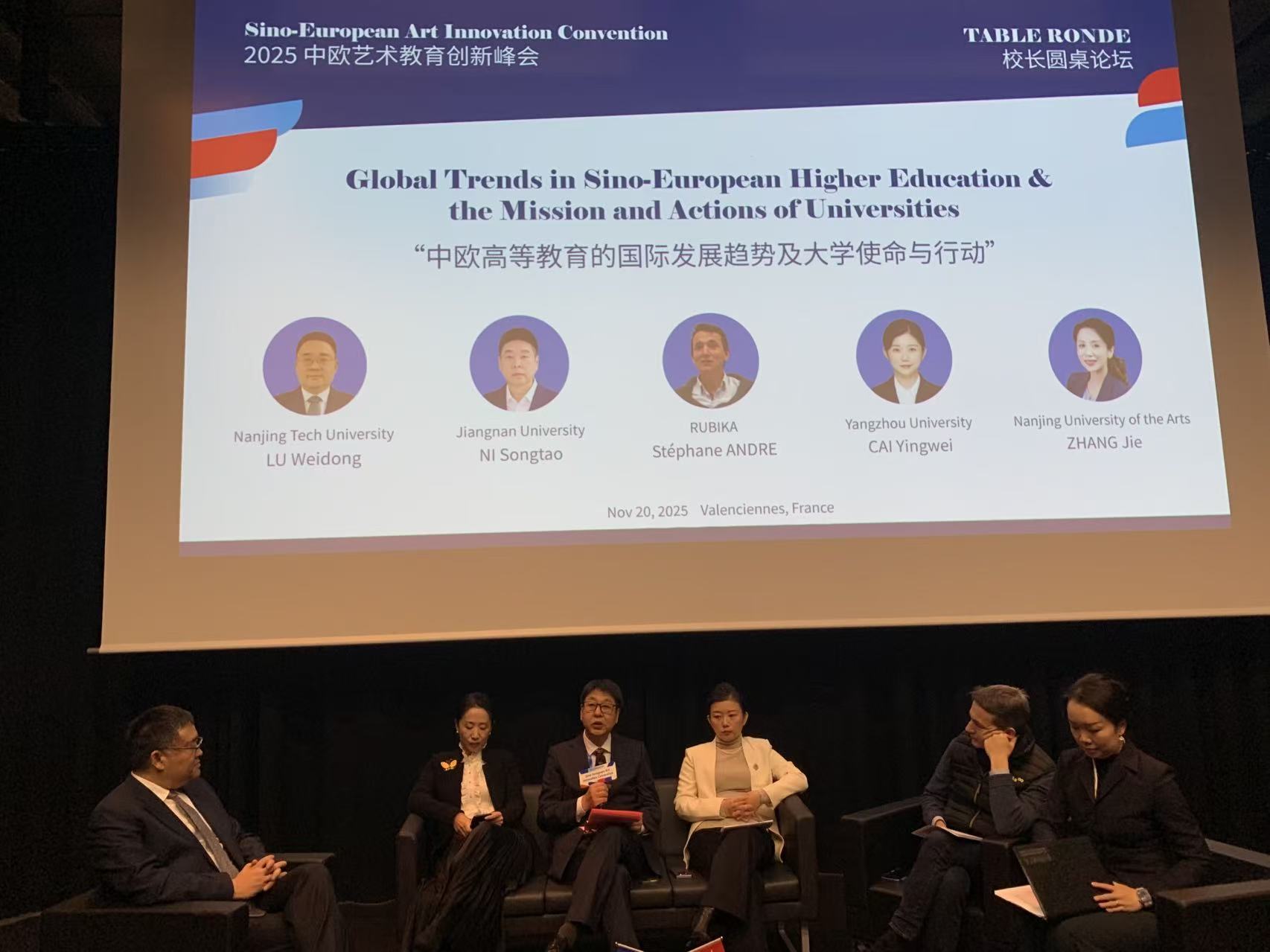 11月19日-20日,“江苏-法国高等教育合作联盟”2025年会、中欧艺术教育创新峰会由法国卢比卡设计与游戏动画学院(RUBIKA)在法国瓦朗谢纳主办。会上,倪松涛代表江南大学,介绍了江南大学2025年对法国高校合作情况以及2026年合作展望,并投票推选卢比卡设计与游戏动画学院为联盟法方主席单位。我校于2024年加入“江苏-法国高等教育合作联盟”,依托联盟平台,持续加强与法国高校在人文、学术、教育等领域的合作。