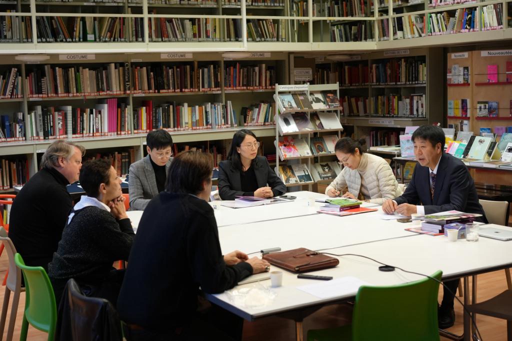 11月21日,在巴黎杜佩雷高等应用艺术学院,代表团一行与国际处主任Natacha Lallemand、时尚与时尚影像系主任Mathieu Buard等会面,双方在设计、时尚等学科深度交流并达成共识,将在师生互访、合办时尚展等领域开展合作。该校与我校同属于CUMULUS设计联盟,是法国顶尖设计类高校,在时尚、纺织、环境设计等方面享有极高声誉。
