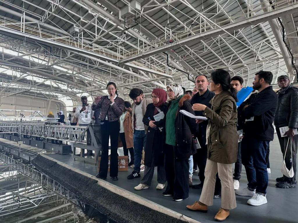 活动首站,留学生们来到水利部太湖流域水治理重点实验室——河湖治理研究基地。在总面积27243平方米的太湖试验厅内,世界首个大尺度室内浅水湖泊风生流物理模型——太湖全湖区风生流物理模型令大家驻足惊叹。该模型模拟范围覆盖全太湖湖区、23条主要出入湖河流及49个岛屿,填补了国内外大型浅水湖泊风生流物理模拟的研究空白。通过双语科普讲座《太湖蓝藻知多少》,留学生们深入了解了数字孪生太湖、蓝藻监测预警等前沿技术,直观感受到中国在浅水湖泊水环境治理领域的科技突破。