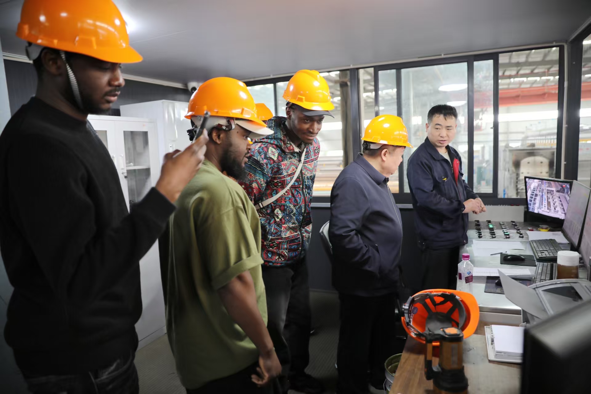 4月14日,我校来自尼日利亚的六名国际学生由国际交流合作处副处长王胤带队走进校友企业——德新钢管有限公司开展参观交流活动。