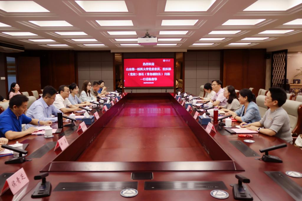10月15日上午,山东第一医科大学党委委员、组织部(党校)部长(常务副校长)闫栋一行来校调研,就新时代高校党建工作进行深入交流。党校常务副校长兼组织部副部长周雪晖主持座谈。