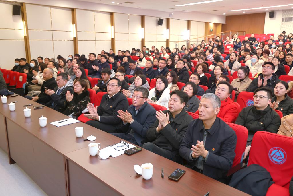 1月5日上午,机关党委于图书馆三楼报告厅召开全体党员大会,选举产生新一届机关党委委员。大会由机关党委书记张菁主持,校党委书记吴正国为全体党员讲授党课,机关全体22个党支部,303名党员同志参加大会。