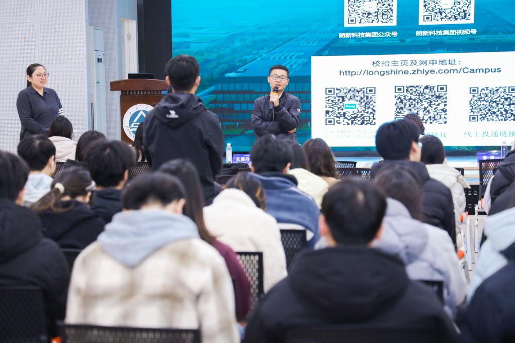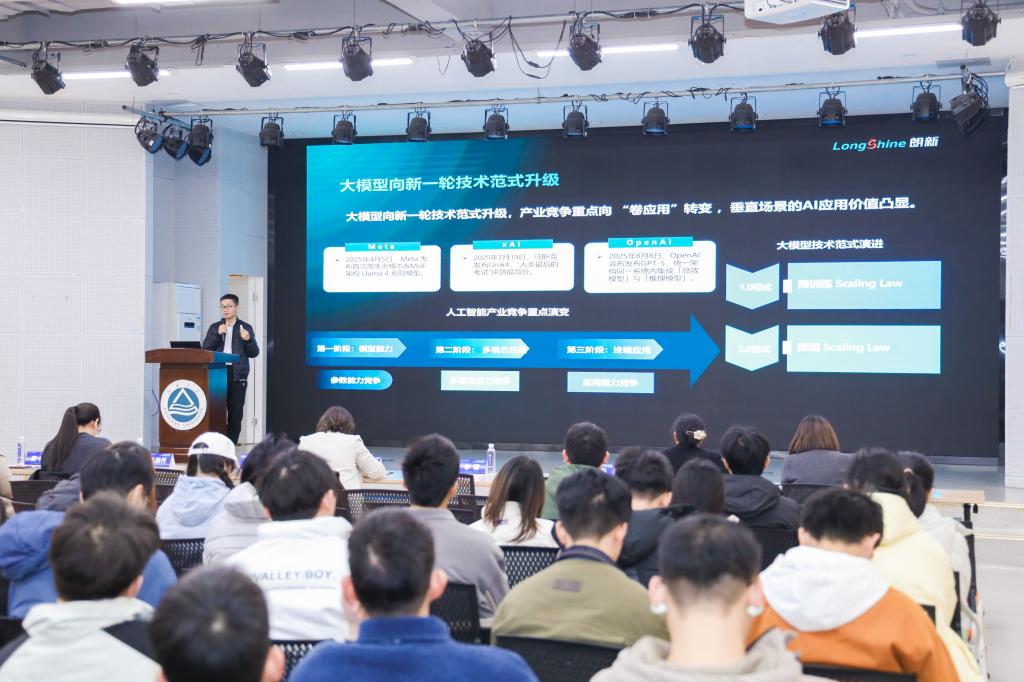 黄飞聚焦AI时代“新工科”人才成长路径展开分享。他深入剖析了全球人工智能发展现状与产业拐点,详细介绍了朗新科技在AI驱动的能源科技领域的战略布局与实践成果,并对企业AI人才能力模型与分级培养体系进行了系统解读。他强调,AI时代为青年学子提供了重塑未来的广阔机遇,热忱欢迎有志于深耕AI与能源交叉领域的江南学子加盟朗新科技,在技术创新落地与产业转型升级的浪潮中实现个人价值与社会价值的统一。