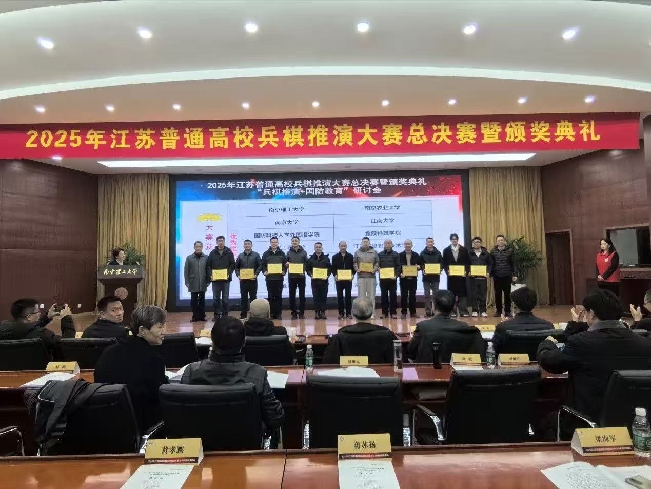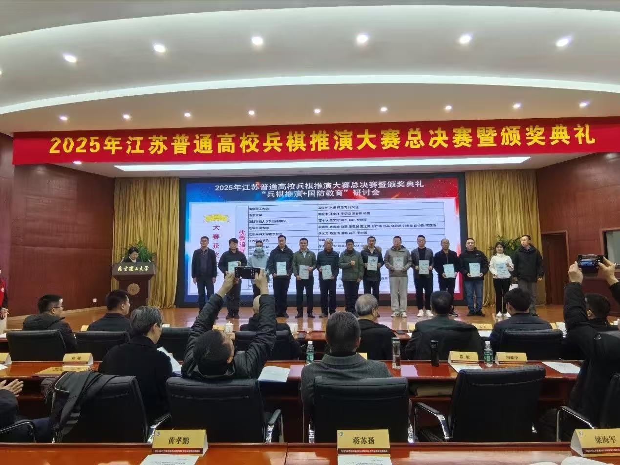 1月11日,2025年江苏普通高校兵棋推演大赛总决赛暨颁奖典礼在南京理工大学顺利举行。我校师生代表参会,参赛学生在现场完成国防素养答辩,展现了良好的综合素养。