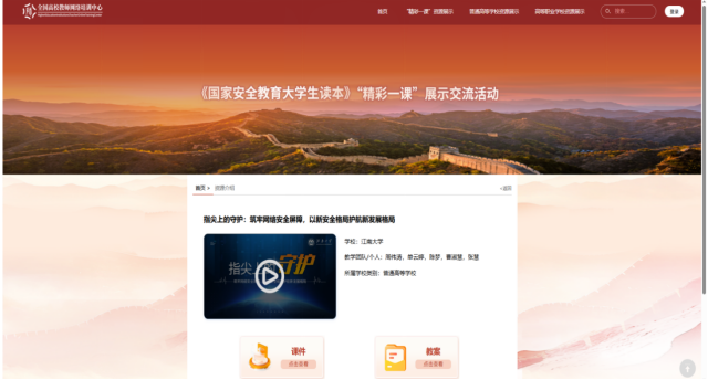 我校入选课程《指尖上的守护:筑牢网络安全屏障,以新安全格局护航新发展格局》,紧扣《国家安全教育大学生读本》重点内容,以总体国家安全观为统领,立足网络安全领域前沿,将真实案例深度融入课堂教学,通过案例剖析、互动研讨等多元教学形式,引导学生从专业视角理解网络安全在总体国家安全观中的战略地位,实现专业教育与价值引导有机统一,充分展现了我校教师扎实的教学功底和创新的教学理念。