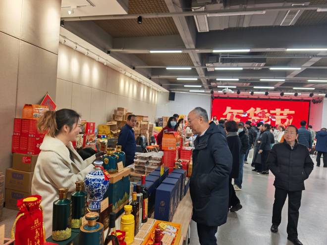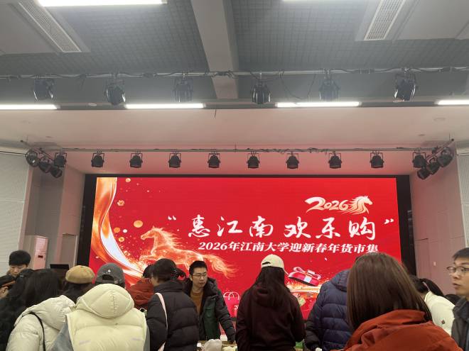 为进一步丰富师生校园文化生活,营造祥和喜庆的新年氛围,1月14日,由校工会精心策划的“惠江南 欢乐购”2026年江南大学迎新春年货市集活动在北区大学生活动中心大厅热闹开市。此次年货市集为期2天,特邀本地及周边知名企业与优秀商家入驻校园,将琳琅满目的年货与实实在在的优惠送到教职工身边,为大家提供了便捷采购年货的一站式体验。校党委常委、工会主席朱飞,校工会副主席刘伯贤、校工会副处级干部许南惠等出席活动。
