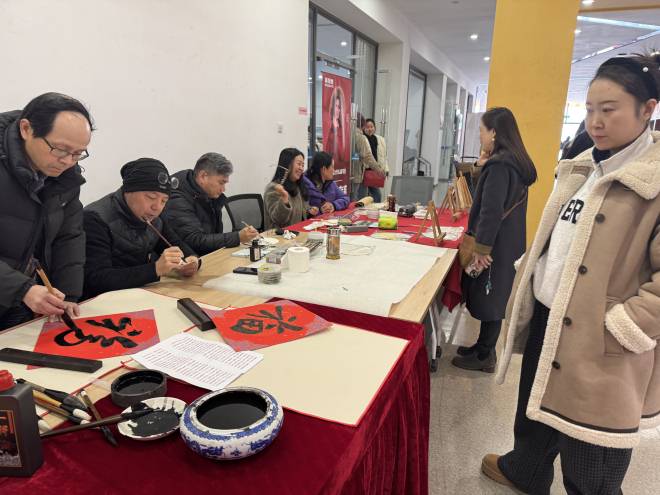 与此同时,教职工书画协会专场活动同样精彩纷呈。书法家们挥毫泼墨,现场书写并赠送春联,并演示国画、水彩绘画,将浓浓的年味与诚挚的祝福融入笔墨之间。活动现场还设置了各文体协会招募展示区,通过图文展板展示、现场讲解以及互动体验等形式,吸引众多教职工报名参与。