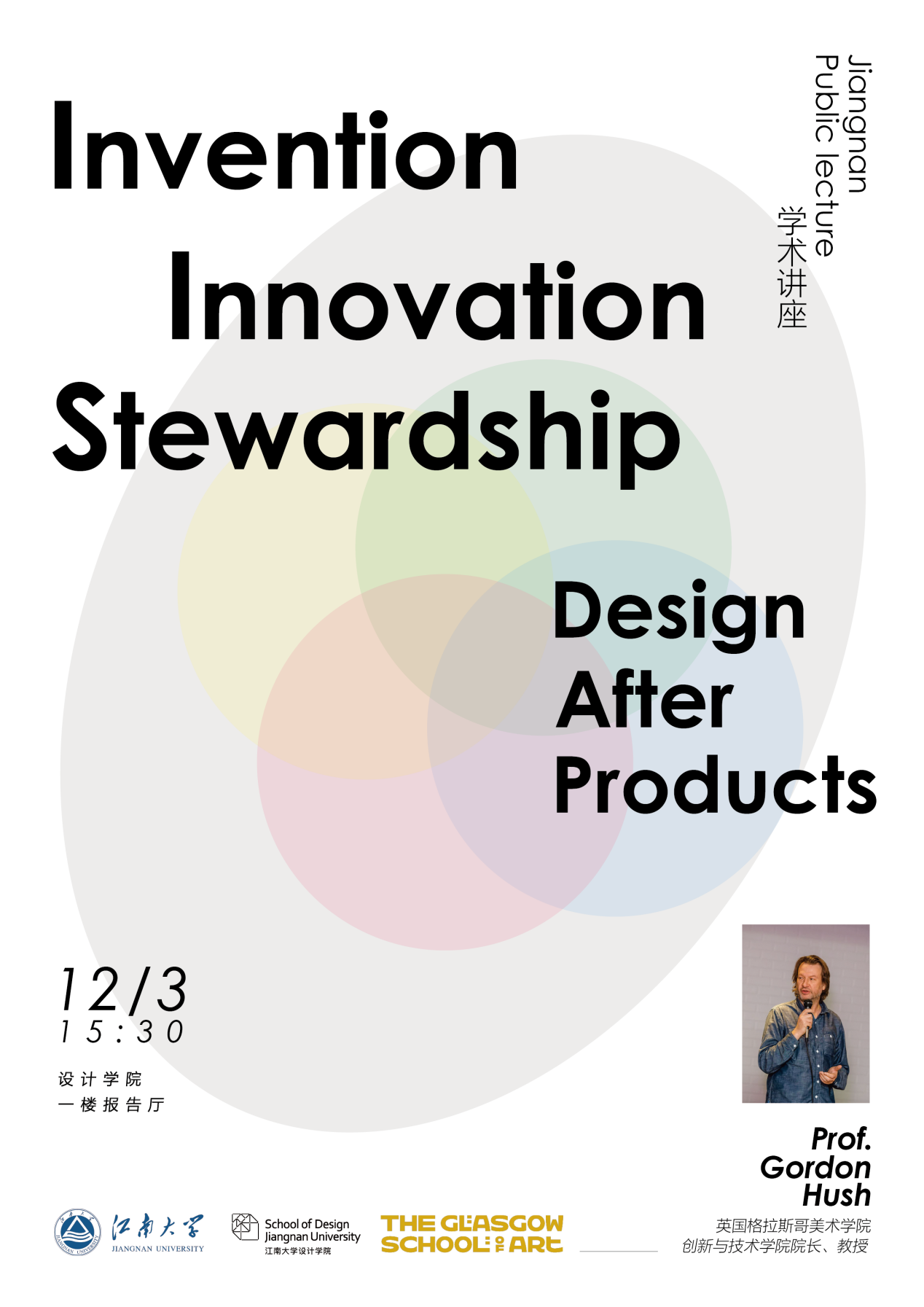 本次讲座将以《Invention · Innovation · Stewardship:Design After Products》为主题,围绕格拉斯哥美术学院创新与技术学院的理念架构与教学实践展开,Gordon Hush教授将结合其宝贵的实践经验,为我们揭示GSA创新与技术学院的核心理念、前沿项目与未来愿景,旨在展现面向未来的设计教育变革图景,促进学术交流和知识共享。