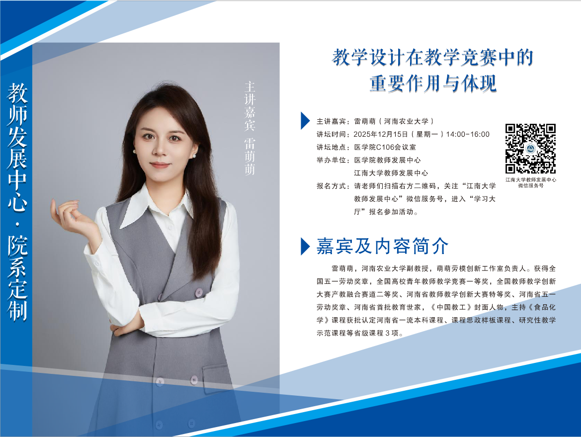 举办单位:医学院教师发展中心、江南大学教师发展中心