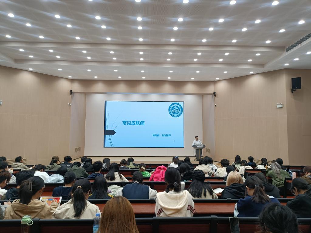 校医院副院长、主任中医师孙红旭主持讲座。她指出,青年学生处于身心发展关键期,面临学业压力与生活习惯变化带来的健康挑战,本次讲座聚焦皮肤病防治、近视防控及高尿酸管理三大议题,助力学生树立科学健康观,掌握实用防护技能。孙红旭强调,“健康是人生最宝贵的财富,希望同学们能成为自身健康的第一责任人。”