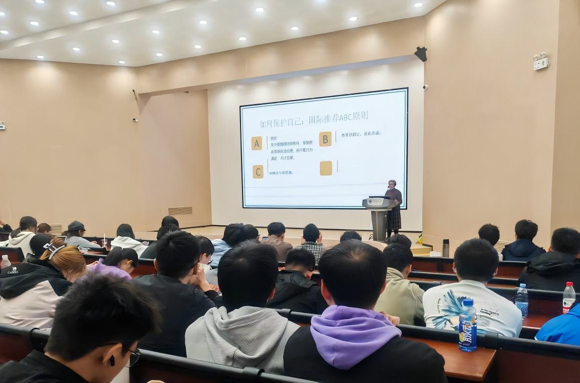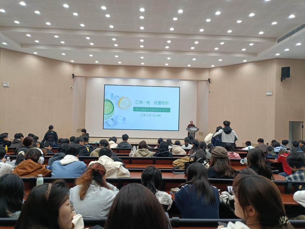 为助力大学生树立科学两性交往观,破除情感认知障碍,11月13日下午2时,由校团委与校医院联合主办的“性心理成长及两性交往安全讲座”在一教1C109顺利开展。此次讲座作为2025年江苏省“青春防艾”同伴教育骨干培训系列活动的关键环节,特邀校医院副主任医师、国家二级心理咨询师沈力晔主讲,吸引了250名学生积极参与,现场座无虚席。