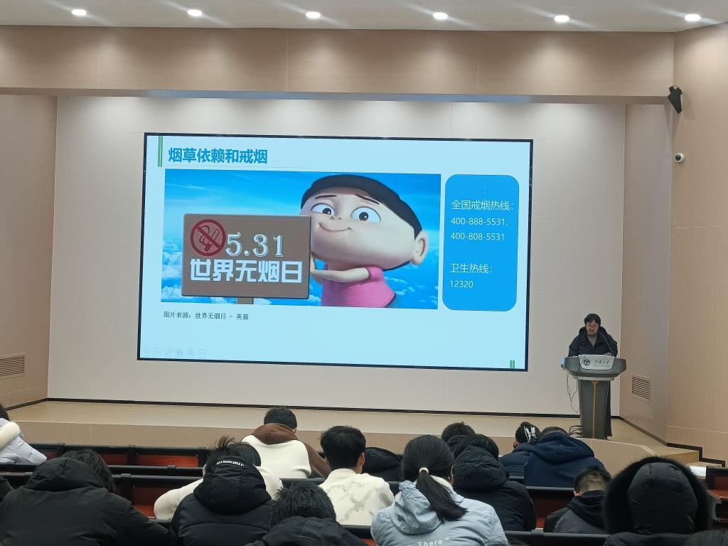 12月9日下午,为助力我校学子科学认知健康风险、系统掌握实用健康防护技能,筑牢身心健康保障防线,由校医院精心筹备并主办的“为健康护航:流感预防、血压管理与吸烟危害解读”科普讲座,在第一教学楼1C109教室顺利举行。本次讲座吸引约80名在校学生踊跃参与,活动由校医院主治医生刘小静主持,校医院医师朱明、杨文军分别带来专业健康知识分享。