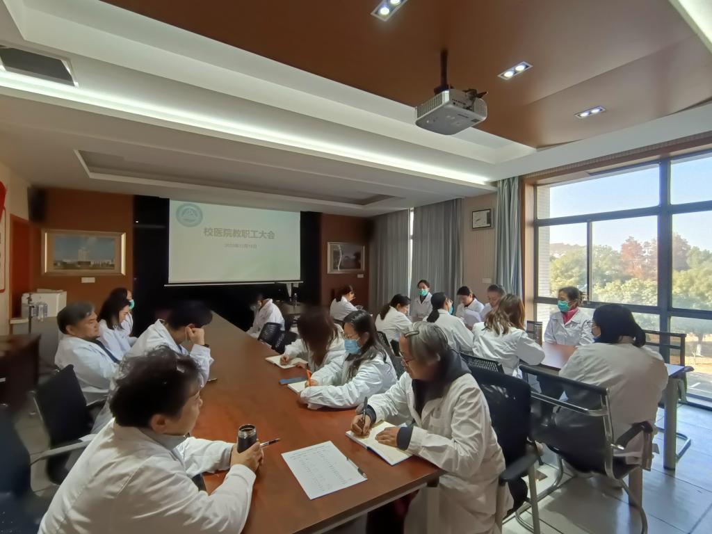 为夯实教职工思想政治与师德师风建设根基,提升医疗服务质量,筑牢全校师生健康保障防线,12月16日下午,校医院在A310会议室召开以“强化师德担当 培育服务初心”为主题的教职工大会。校医院院长孙红旭主持会议,全院教职工参会。