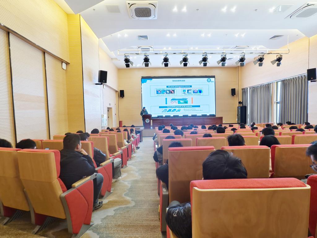 互动交流环节,与会师生围绕不稳定材料测试环境、光纤材料转贴、多层范德华异质器件电压施加、磷烯双激子辐射结果等问题展开热烈讨论。王俊勇结合团队研究成果与国际前沿案例,对师生提出的问题进行了详尽解答,并分享了该技术的应用前景。本次报告不仅为参会者带来了二维半导体发光领域的学术前沿动态,更在材料制备、器件设计等方面提供了宝贵思路,为相关领域的技术创新与产业升级注入新动能。