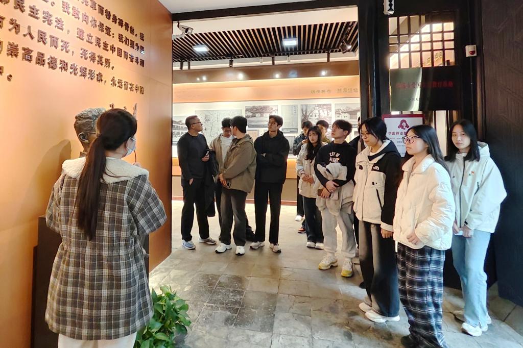 随后,师生前往秦邦宪故居,走进一段浓缩于青砖黛瓦间的思想岁月。讲解以“民族危亡中的革命求索”为脉络,细致梳理了秦邦宪同志在宣传战线上的跋涉与坚守。在风雨如晦的年代,文字成为唤醒民族的利器,思想照亮沉沉长夜。大家不仅触摸到早期共产党人那份炽热的信仰,也深切感受到理论宣传背后所承载的千钧重量。