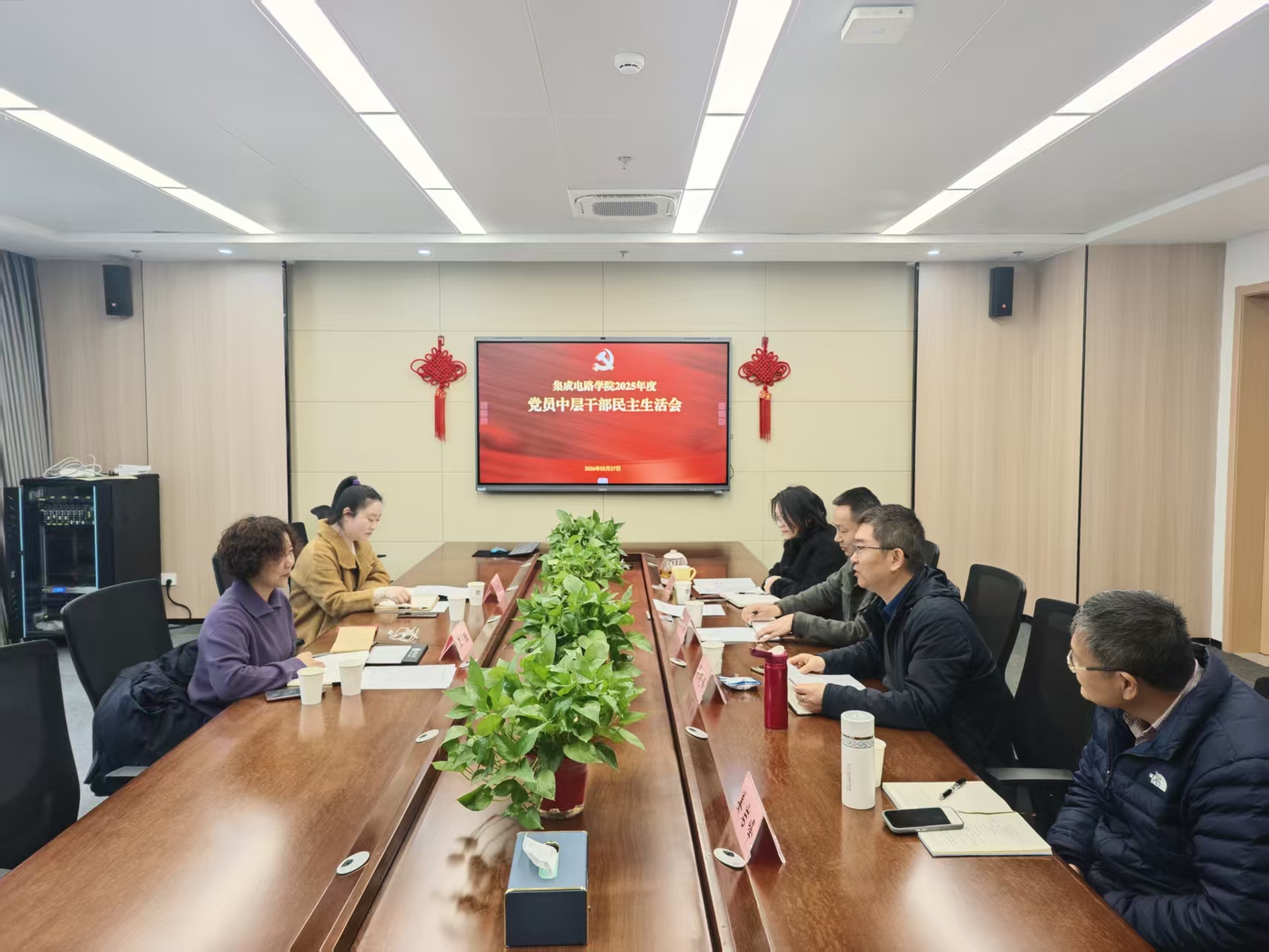 2月27日,集成电路学院党委在A316会议室召开2025年度党员中层干部民主生活会。校党委委员、江阴校区管理办公室主任王珏到会督导,学院全体领导班子成员参会。会议由学院党委书记耿向阳主持。