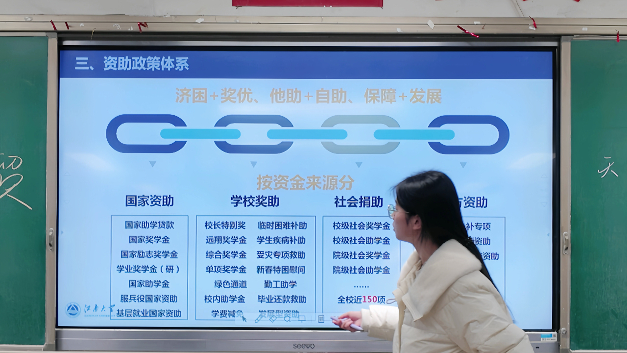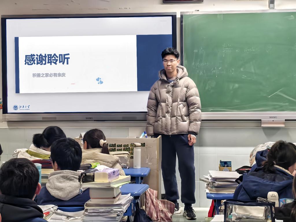 在南京市第十三高级中学,陶裕晟站上讲台,面对40余名来自普通家庭的高三学生,分享自己的受助成长故事。“如果因为经济犹豫过要不要读大学,国家的助学贷款会给你底气。”他的分享让不少同学深受触动,宣讲会后很多同学围着他询问申请细节,他都一一耐心解答,还留下了自己的联系方式,承诺后续随时为大家提供咨询。在芜湖市无为中学,何宵用“学长学姐面对面”的形式,为50余名学生详细解读了助学贷款、奖助学金的相关政策。有同学拉着她的手说:“学姐,我之前不知道大学有这么多资助政策,现在心里有底了,我要好好冲刺江南大学!”在驻马店高级中学,冯怡鸣给同学们介绍了国家助学金、国家励志奖学金、生源地信用助学贷款、校内奖助补减免等各类资助政策,针对困难学生最关心的申请流程、还款方式等问题,还结合实际案例逐条讲解,现场解答大家的疑惑,确保所有同学都能听懂、弄通。