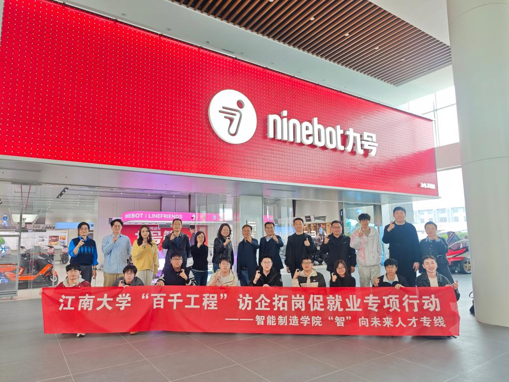 4月1日下午,江南大学智能制造学院(君远学院)党委书记王冰,党委副书记徐静,教师代表宁萌、李臻峰、焦新宇,学工办主任高鑫,辅导员熊欣仪及学生代表赴九号科技有限公司开展访企拓岗促就业专项行动。九号科技有限公司人力资源部负责人凌志军、性能产品线负责人胡志诚、华东制造中心负责人仲荣、性能电自开发部负责人汪自凯及校友代表等出席活动。