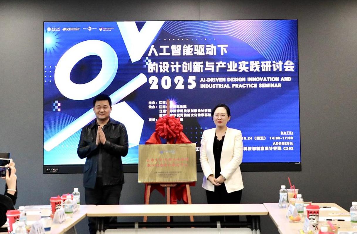会上,学院副院长牛犁教授与无锡元禾服饰有限公司代表李国方先生共同为“江南大学无锡元禾服饰数字创意设计研究中心”揭牌。下一步,该中心将充分发挥学院学科与人才优势,以人工智能驱动的设计创新赋能企业高质量发展。