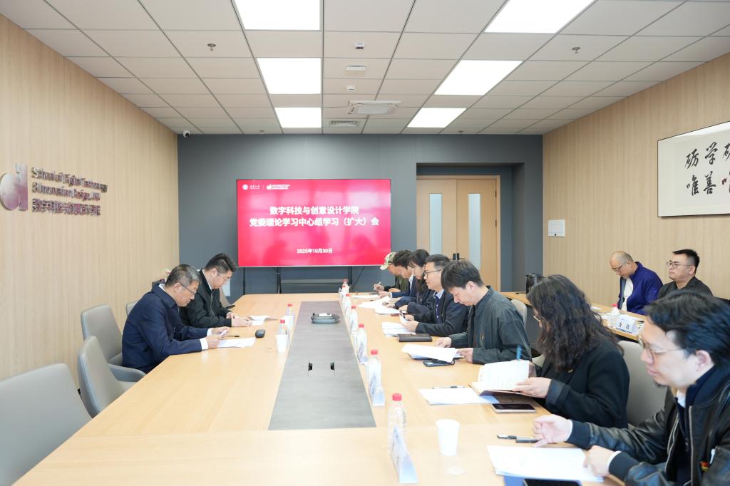 10月30日,数字科技与创意设计学院党委理论学习中心组学习(扩大)会在学院B206会议室召开。校长陈卫到会指导。学院党委理论学习中心组成员、教工党支部书记、系主任参会。会议由学院党委书记胡振宇主持。