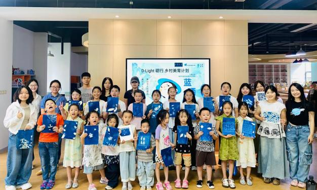 实践中,队员化身记录者、守护者与引导者,手把手指导乡村孩子创作,共完成上百幅独特蓝晒作品并举办成果展,沉淀出可复制的课程方案。活动既在孩子心中种下审美种子,也让团队深刻体悟协作价值,用古老工艺搭建起乡村美育的桥梁。
