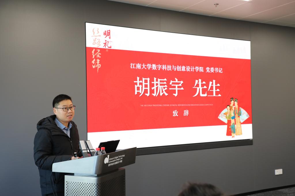 中国纺织服装教育学会会长纪晓峰、数字科技与创意设计学院党委书记胡振宇、江阴市科技局副局长李罗娜、柯镂软件开发(上海)有限公司总经理韩炜分别致辞。与会嘉宾一致认为本届大赛作品深度融合数字技术与明代服饰文化,生动再现传统服饰的工艺细节与文化内涵,期待各方携手,共同推动中华服饰文化在数字时代绽放新的光彩。
