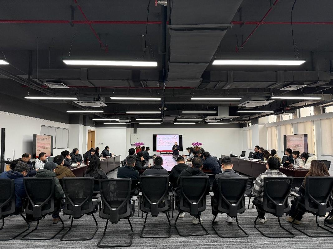 宣讲会上,谢玉梅教授以《地缘政治经济格局与中美经济比较》为题作专题报告。她紧密结合《中共中央关于制定国民经济和社会发展第十五个五年规划的建议》核心要求,围绕“十五五”时期是基本实现社会主义现代化的关键定位,系统剖析了当前全球地缘政治经济格局的演变趋势。报告中,谢玉梅教授重点聚焦美国发起的贸易战的深层逻辑与深远影响、中国在国际舞台话语权的提升路径、美国国家安全战略的发展走向,以及中国“一带一路”倡议的战略缓冲价值等核心议题,结合当下国际形势及近期热点政治事件,通过详实的数据支撑和生动的案例分析,进行了深入浅出的解读。宣讲过程中,全体教职工专注聆听。