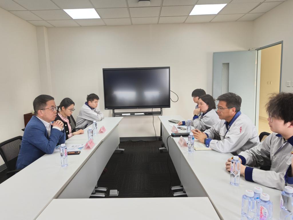 在长广溪智能制造(无锡)有限公司,学院调研团队看望来自控制工程专业的卓工生,与公司协作机器人软件开发部部长林建雄及学生座谈。林建雄介绍企业发展概况、学生实践安排等。