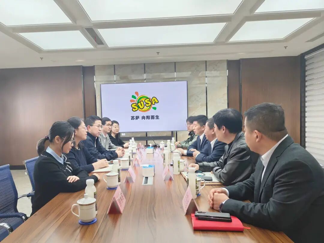 在江苏苏萨食品有限公司,调研团队看望在此实践的朱志豪同学,并与公司技术总监谢德芳、研发总监赵闯营、生产总监李向阳、采购总监张静维等座谈交流。谢德芳详细介绍公司业务布局,带领我校师生参观展厅与车间,全面讲解企业发展历程、产品体系、先进设备及生产制作工艺。