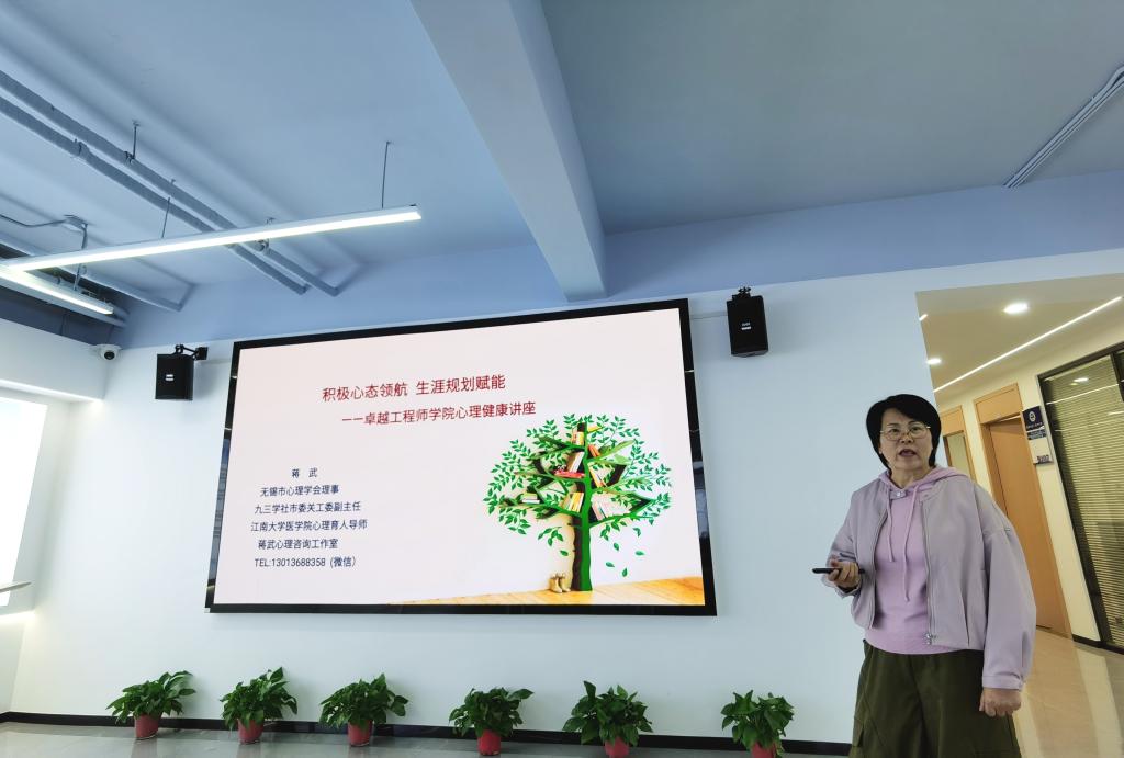 随后,蒋武以《积极心态领航·生涯规划赋能》为题作专题讲座。她从世界卫生组织对健康的定义及马斯洛心理健康的十条标准出发,结合自己多年从业经验和相关案例,系统剖析研究生群体常见的抑郁、焦虑、人际关系困扰及学业科研压力等核心问题。针对压力来源,蒋武从自我调节与生活管理、认知调整与压力管理、构建与利用支持网络等三方面给出积极的应对策略,并强调当自我调节效果不佳时,寻求专业心理帮助是正常且负责任的选择。
