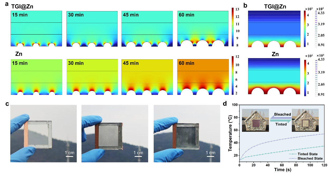 电致变色窗因其可动态调节透光率和节能特性,被视为未来绿色智能建筑的核心组件。然而,以锌金属电沉积为基础的水系电致变色器件在长期循环过程中存在锌枝晶生长、界面副反应和沉积不均等问题,严重制约其实际应用。