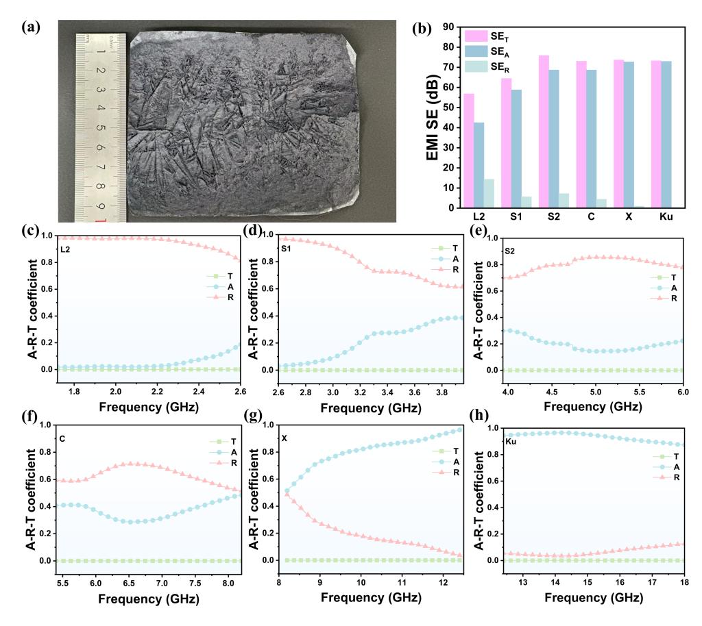 随着现代电子设备的普及,电磁波(EMW)污染问题日益严重,对人体健康和电子设备的正常运行构成了威胁。多数电磁屏蔽材料往往因电导率较高,存在“高反射-二次污染”难题,对周围精密电子器件及通信系统造成干扰。电磁屏蔽材料在实际应用中除需具备高效的电磁干扰(EMI)屏蔽能力外,其热伪装性能也日益成为关键指标,尤其在军工隐身、高温作业防护及航空航天等极端环境中。