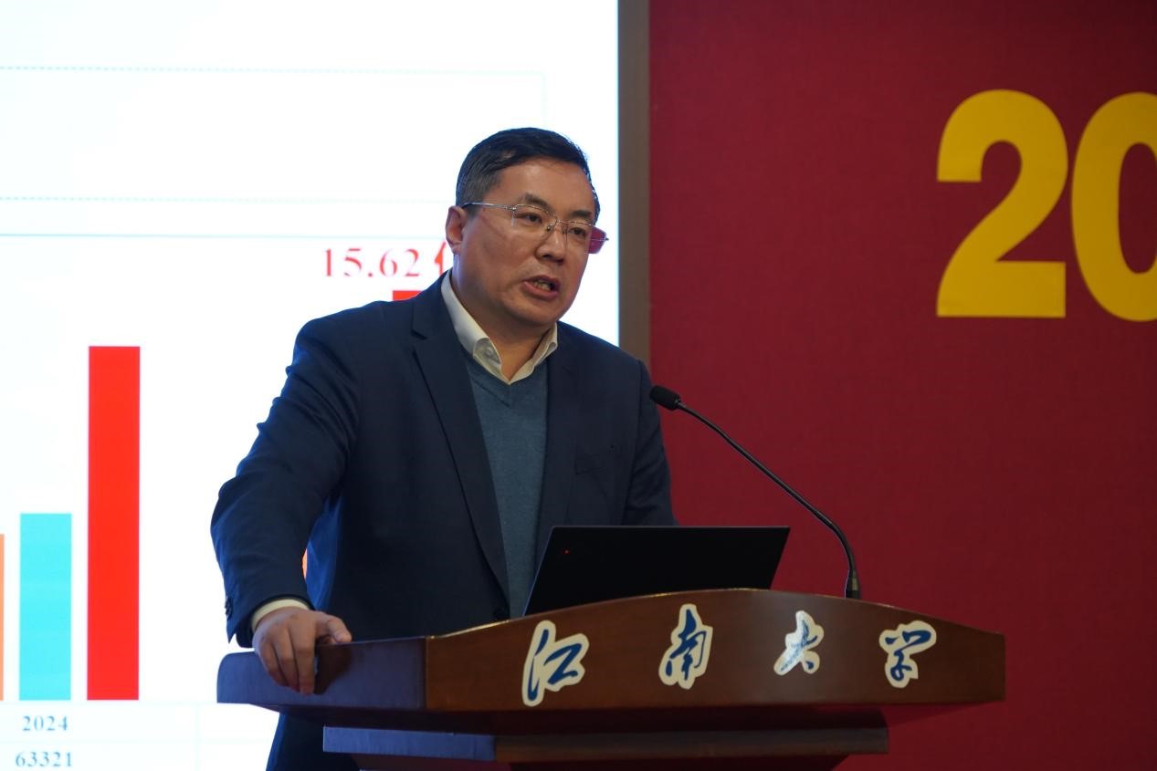 刘龙作2025年度科研工作报告,全面总结过去一年学校科研工作的进展与成效。全校到账科研总经费突破15亿元,同比增长16.3%;获批国家自然科学基金项目170项、主持国家重点研发计划项目12项;人文社科国家级项目立项33项,实现国家级哲学社会科学实验室“零的突破”;拟获国家科技进步二等奖1项(初评公示结束)、教育部一等奖2项、江苏省科学技术奖一等奖2项、江苏省青年科技杰出贡献奖1项;新增江苏省工业合成生物学重点实验室(A类)等高能级平台;专利转化活力持续增强,智库影响力显著提升,市校融合创新深入推进。报告同时深入剖析了当前学校科研工作存在的问题与不足,并对2026年重点任务作出了系统部署。