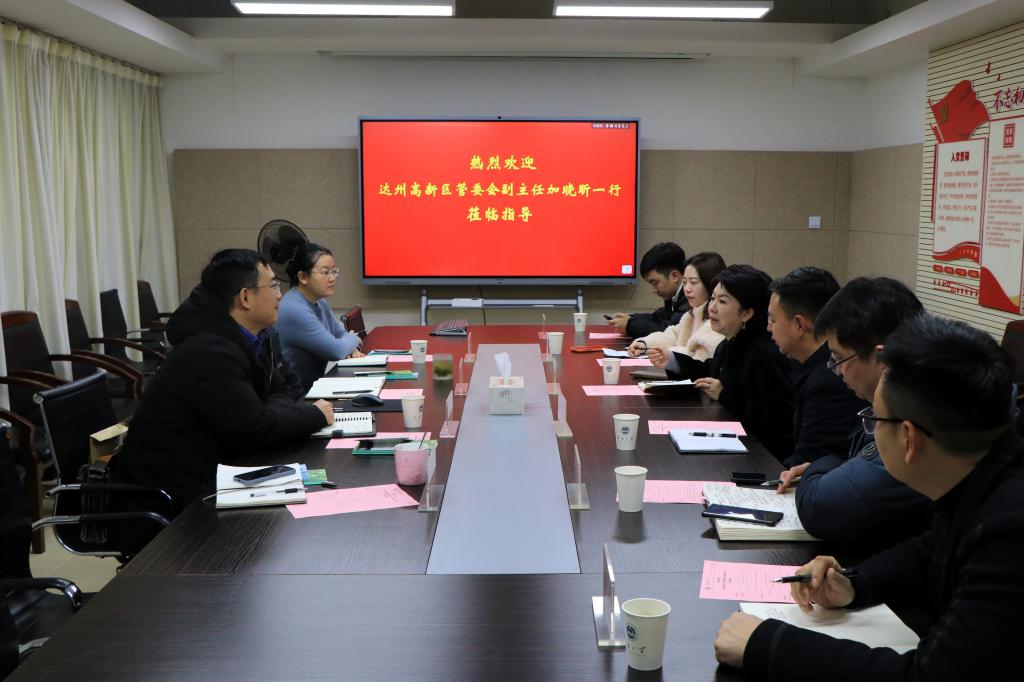 彭新建对加晓昕一行的到来表示热烈欢迎,并简要介绍了学校的历史沿革、学科发展、办学格局、科研概况及技术转移创新模式等方面的发展现状。他指出,学校长期以来致力于科技创新和产教融合,目前达州高新区重点发展食品加工、苎麻、生物医药等产业,与我校优势学科高度契合,他希望双方进一步深化全面战略合作,开展形式更为多样的交流合作。