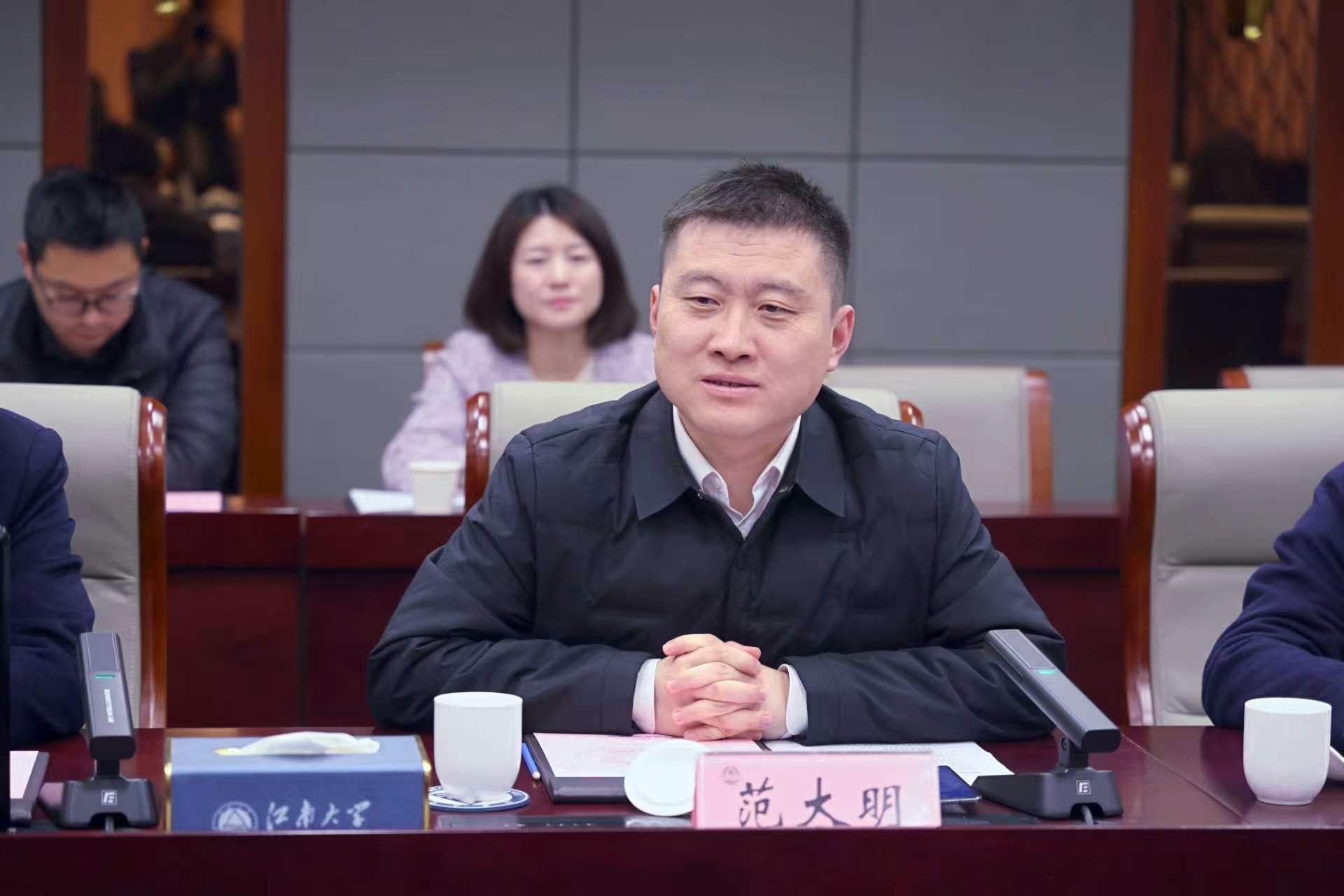 范大明对母校的热情接待表示感谢。他表示此次回到母校倍感亲切,是一场回家学习之行。他介绍了西南大学的办学概况,回顾了2025年12月陈卫校长带队赴西南大学调研指导的交流成果,希望“十五五”期间,充分发挥长江下游带动长江上游、产业下游带动产业上游的联动效应,两校形成连贯合作。
