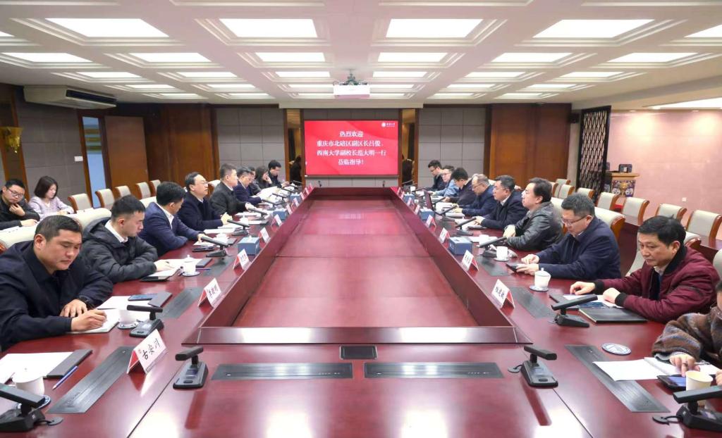 刘龙对吕俊、范大明一行的来访表示热烈欢迎。他围绕江南大学的学科建设、科学研究、校地合作模式等方面作了全面介绍。刘龙表示,西南大学学科特色鲜明,与江南大学在诸多领域具有共通之处,北碚区作为重庆市重要的科教大区,资源禀赋优越、发展潜力巨大,希望双方以此次交流为契机,进一步加深了解,为未来深化合作奠定良好基础。