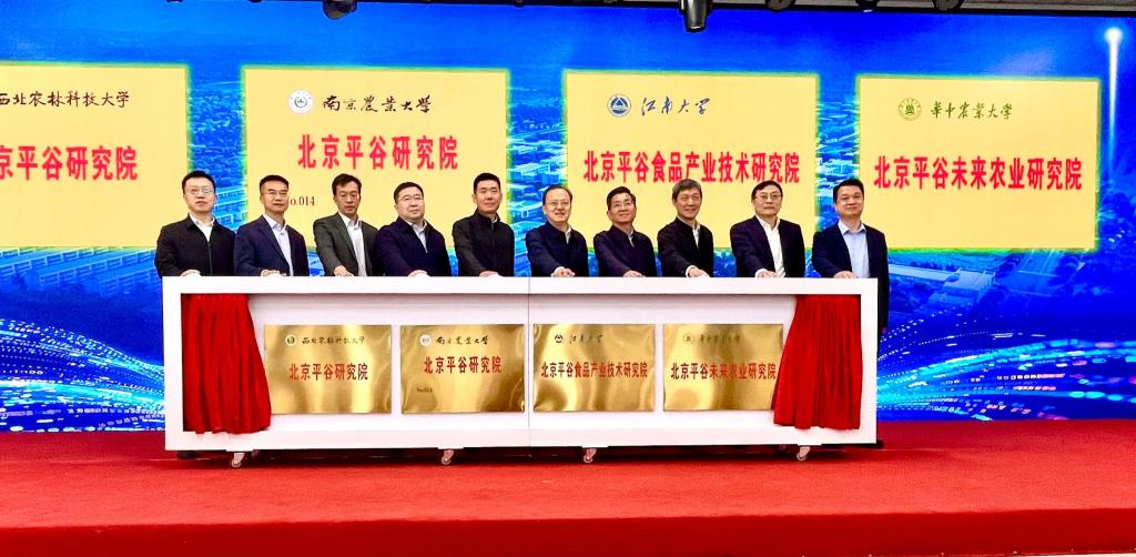 座谈会上,西北农林科技大学、江南大学、南京农业大学、华中农业大学与平谷区人民政府完成集中签约,入驻农业中关村,聚智聚力打造创新样板。四所高校分别设立研究院并同步揭牌,其中江南大学设立“北京平谷食品产业技术研究院”,将聚焦现代食品、功能性食品、特医食品等领域,推动高校科研资源、人才资源、技术资源向农业中关村集聚,助力农业关键核心技术攻关,加快创新成果从“书架”走向“货架”。