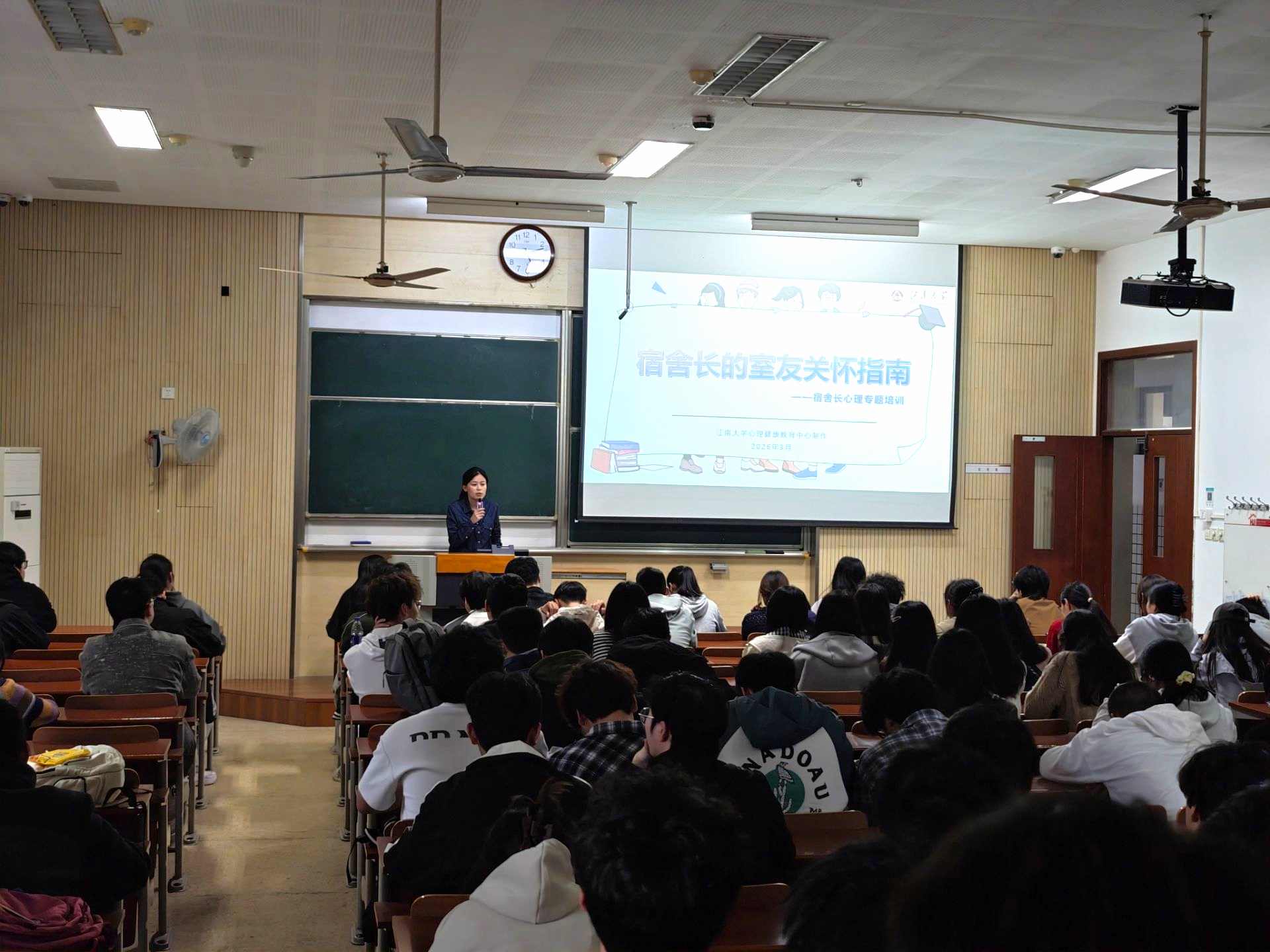 为打通校园安全稳定的“最后一米”,将日常安全管理下沉到学生一线,4月2日下午,数学与数据科学学院于1A111教室召开全体宿舍长心理健康专题培训会。会议以“宿舍长的室友关怀指南”为主题,聚焦宿舍长心理关怀与安全管理的核心职责,着力提升宿舍长在心理风险识别、同伴关怀支持、宿舍矛盾化解等方面的综合能力。会议由学院辅导员李丹主持,学院全体本硕宿舍长参加会议。