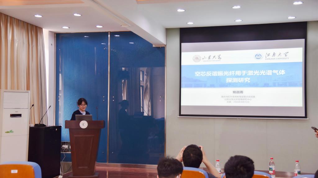 姚晨雨研究员作了题为“空芯反谐振光纤用于激光光谱气体检测的研究”的学术报告。报告重点介绍了空芯反谐振光纤在气体检测领域的应用原理与技术优势,特别是通过飞秒激光在光纤结构表面加工线形微空洞,实现气体引入与光场的有效耦合,从而提升光谱检测灵敏度与响应效率。报告结合实验设计与测试结果,展示了该技术在高灵敏气体检测中的应用潜力,为微结构光纤与激光光谱技术的融合提供了新的研究思路。