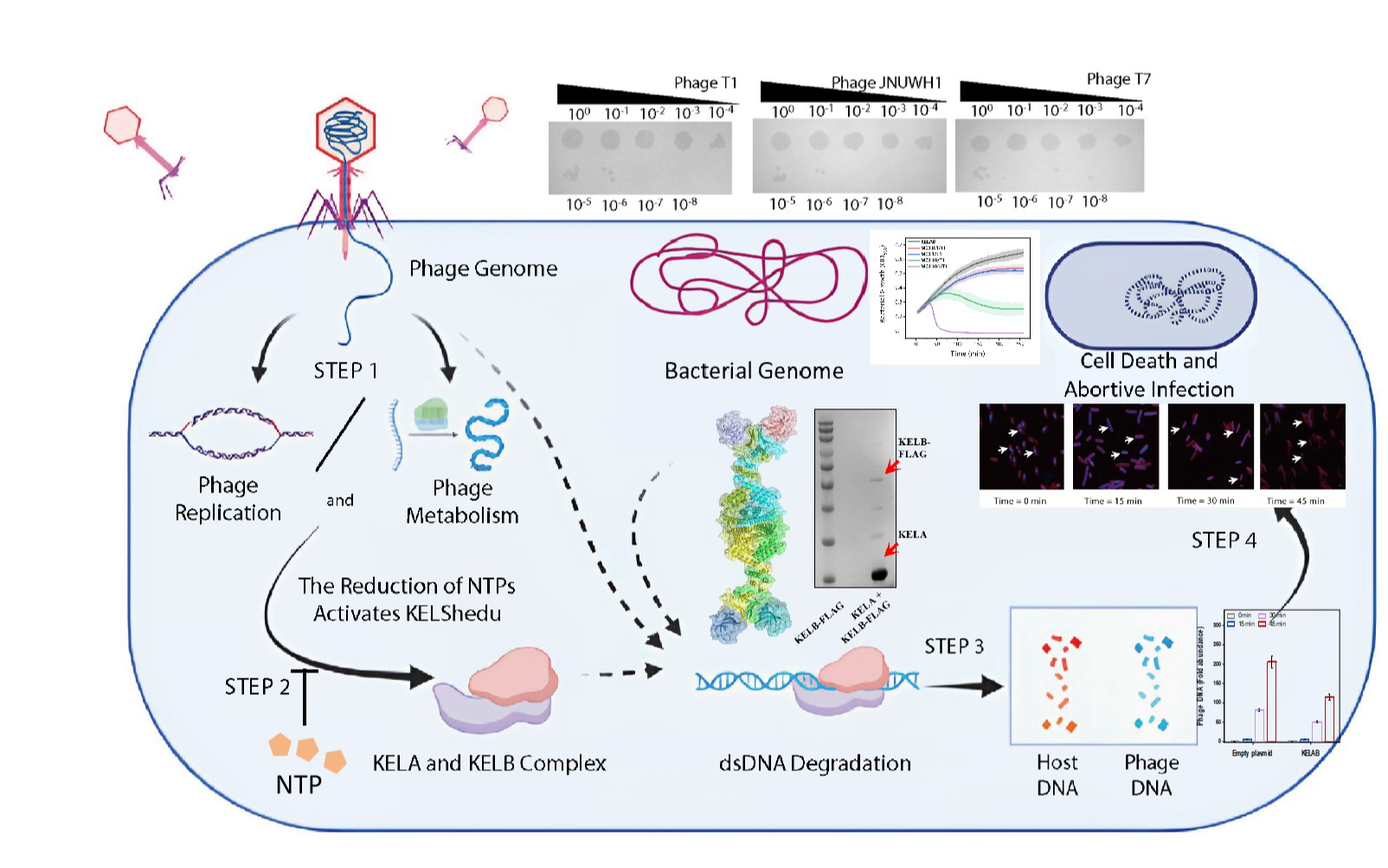 近日,我校生物工程学院饶志明教授团队在解析噬菌体防御系统作用机制方面取得重要进展,研究成果“The two-component nuclease-active KELShedu system confers broad antiphage activity via abortive infection”正式发表于Science Advances。噬菌体是感染细菌的病毒,严重威胁有机酸、氨基酸等依赖细菌发酵的高价值工业品的工业生产。在自然环境中,噬菌体与其宿主细菌与之持续进行进化...